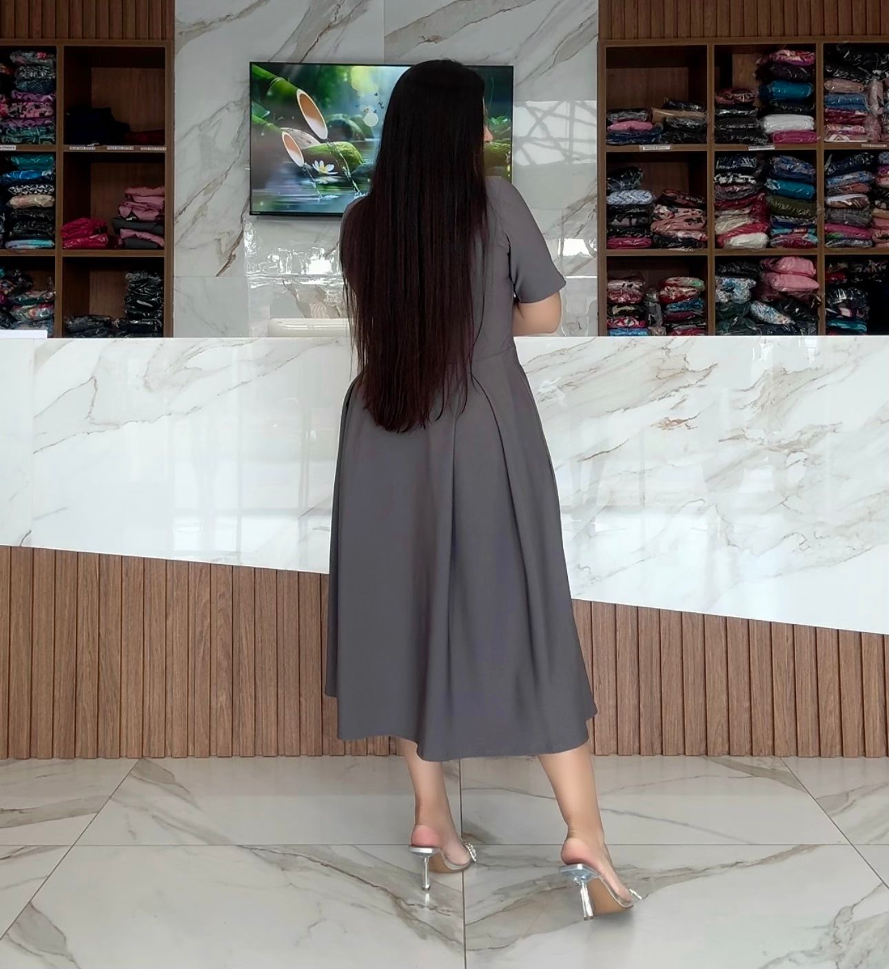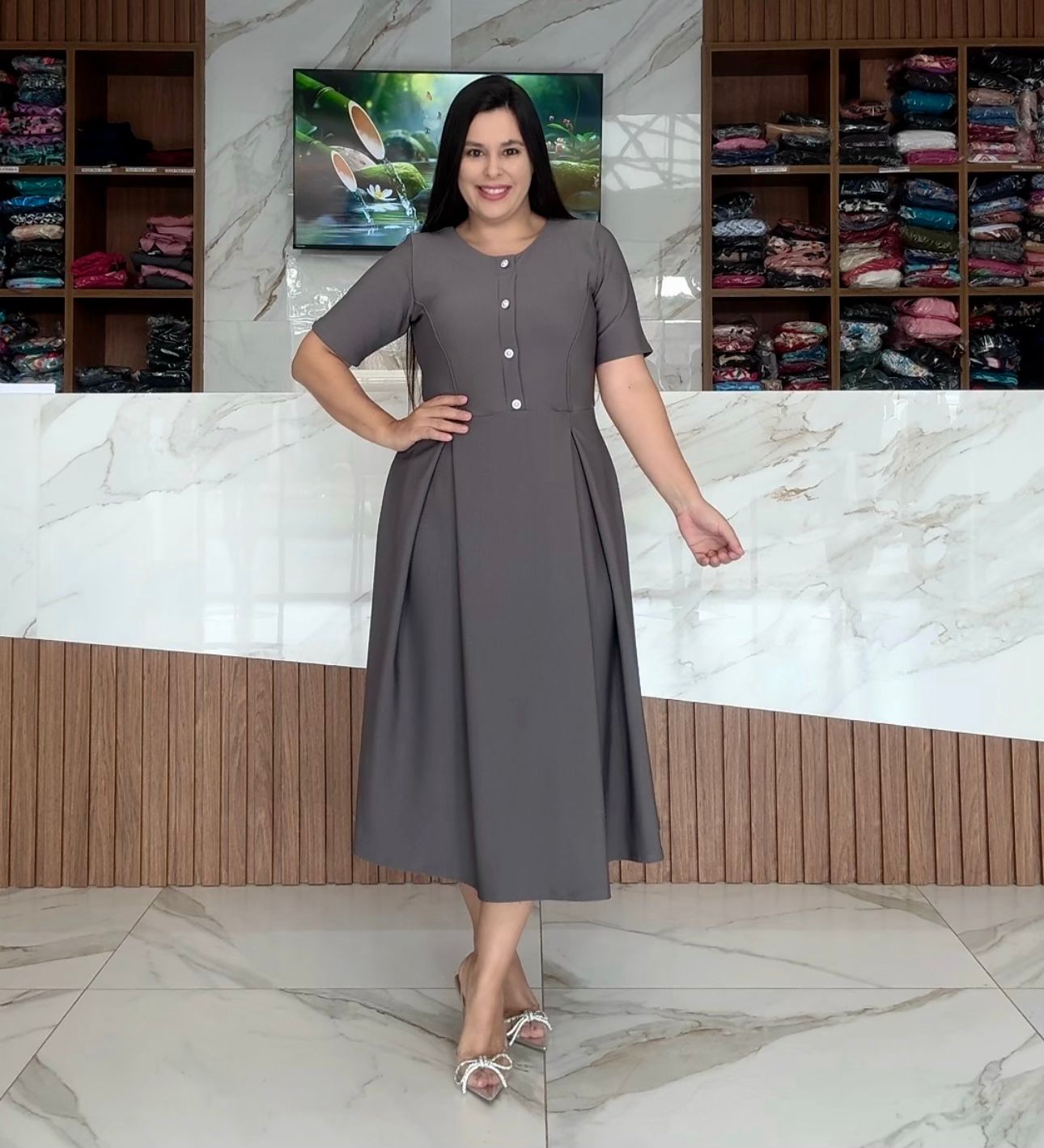 VESTIDO MAX MIDI COM PREGAS BOTÃO NÃO FUNCIONAL MANGA MEDIA CONFECCIONADO EM MONTARIA PREMIUM !!!